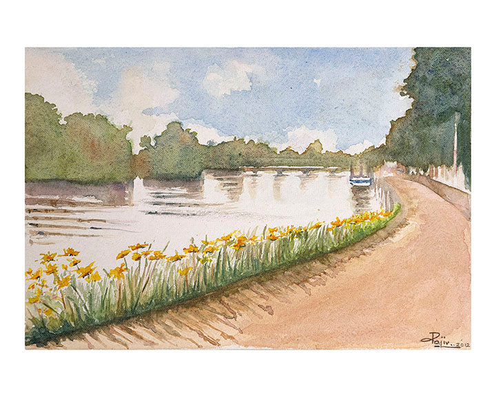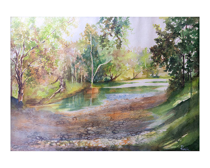 "Serenity is all around us if only we use all our senses," he says. He goes on "We should see, not just look, and rediscover the charm of verdant trees or a quaint path up a hillside; listen to the rhythm of waves on the sea, or even a rustic marketplace; relax in the touch of the breeze as it caresses the brow; savour the taste of the melting snow on a peak; be entranced by the intoxicating fragrance of a flower at dawn."In this eclectic collection of canvasses, Rajiv Deshmukh has attempted to give expression to the many forms of serenity he has seen and experienced. A major influence in Dr. Deshmukh's artistic endeavours has been the doyen of artist, Shri Ravi Paranjape, who recognized his raw talent and thought processes and encouraged him to create canvasses in watercolours and oil pastels.